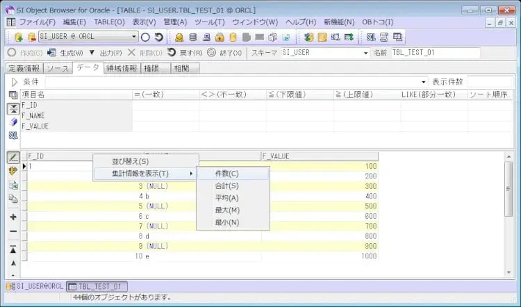Oracle データグリッドの列ヘッダで・・・集計関数ができる