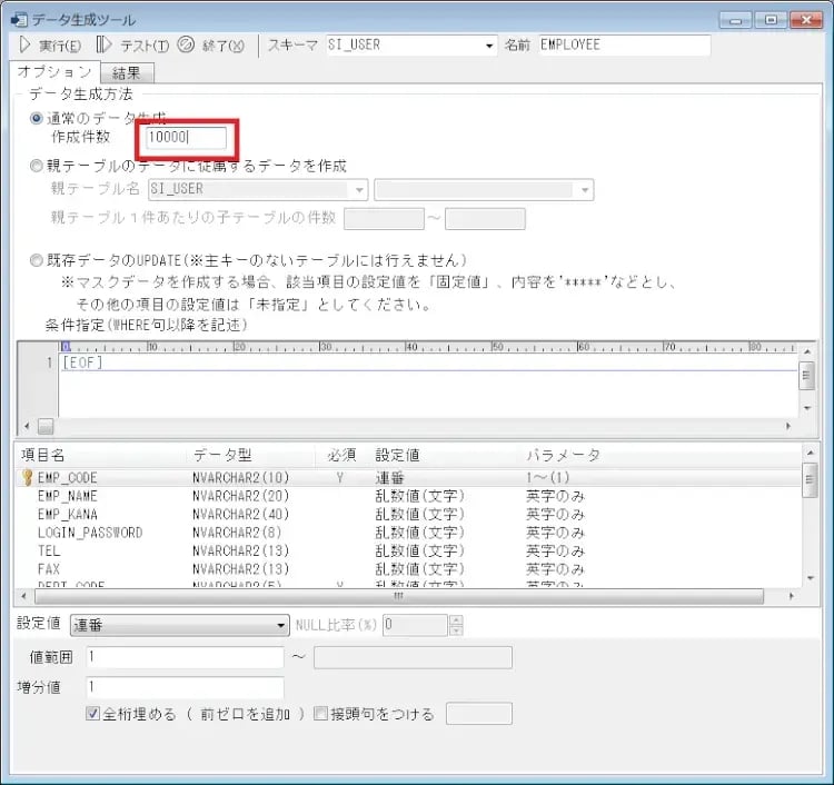 まず、何件作るかを入力。今回は1万件作成してみましょう。