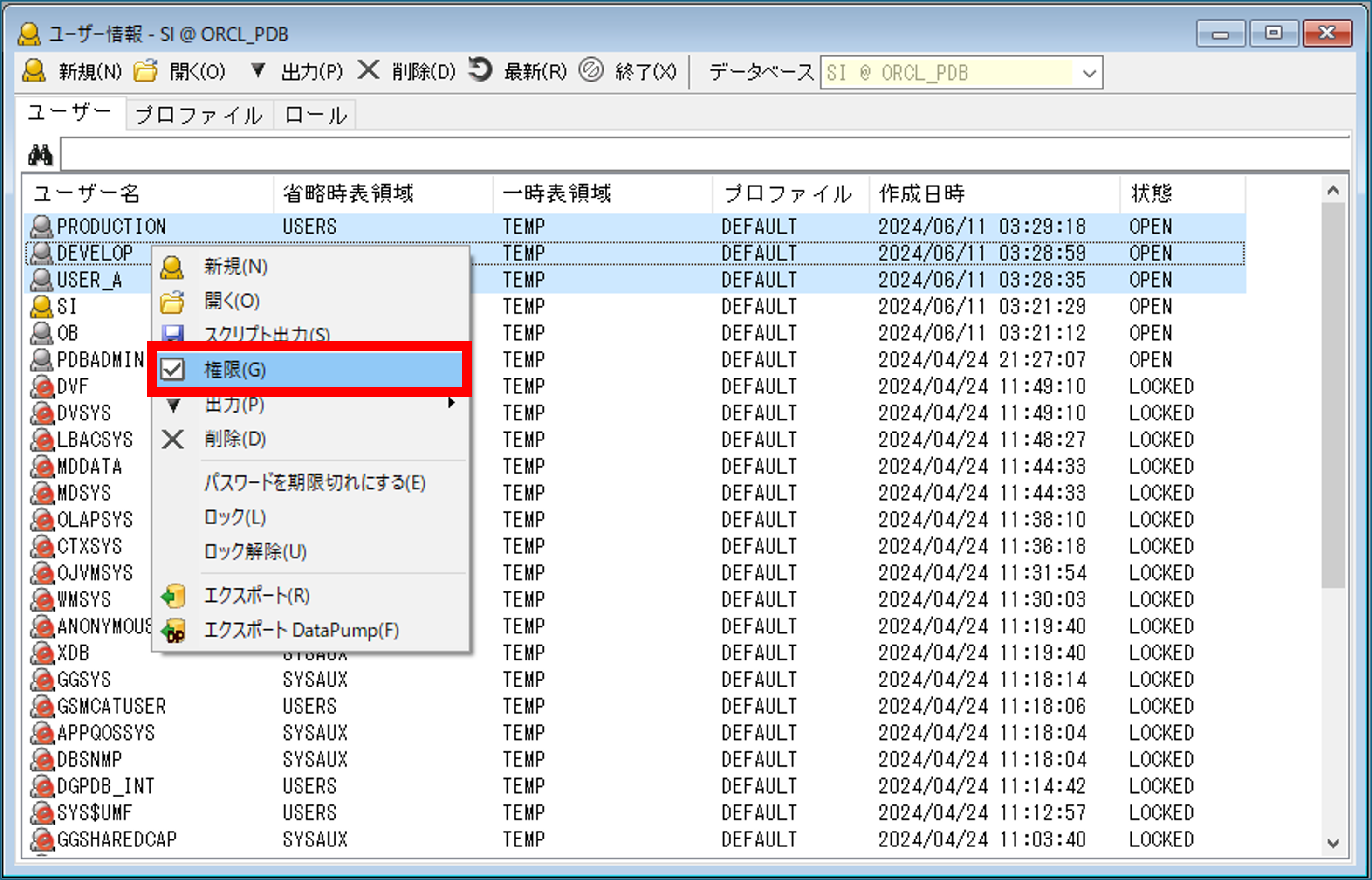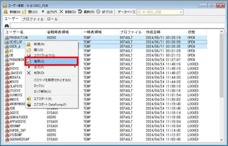 また、ユーザー一覧から複数ユーザーを選択して右クリック→権限を設定することで、選択したスキーマのスキーマ権限をまとめて付与することもできて便利です!