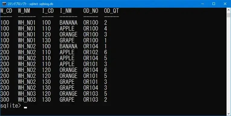 受注日が2023年3月に含まれるデータが表示されていることが確認できます。4テーブルを使用しているので、各テーブルはAS句で別名を付けて簡素化しています。