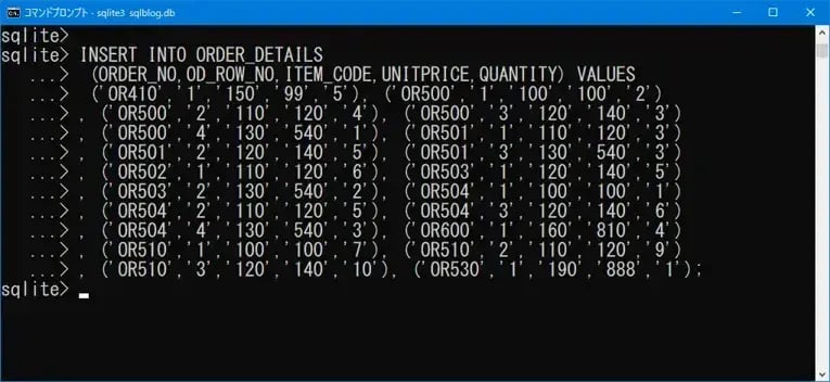 商品マスタのデータは1問目で挿入したデータを使用します。受注テーブルと受注明細テーブルにデータを追加で挿入します。