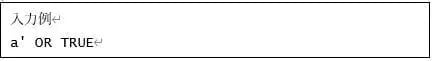 別の角度から説明します。仮に「a' OR TRUE」という文字が入ってきてもあくまで「a' OR TRUE」という一つの文字列としてしか解釈されないので、SQL文全体への影響はありません。試しに上記の入力をしてみます。