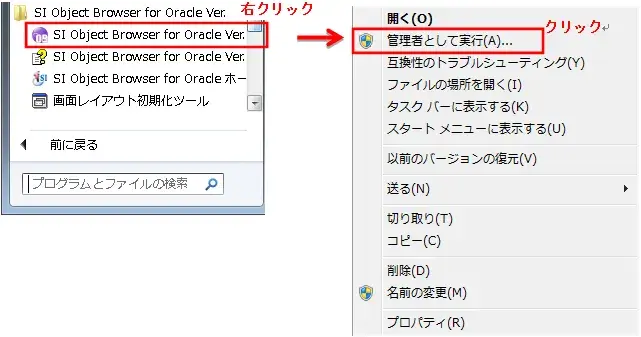OSがVista以降の場合は、「SI Object Browser 11」の起動アイコンを右クリックし、