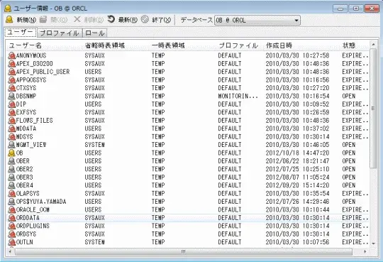 データベースに登録中のユーザー・プロファイル・ロールを一覧表示します。