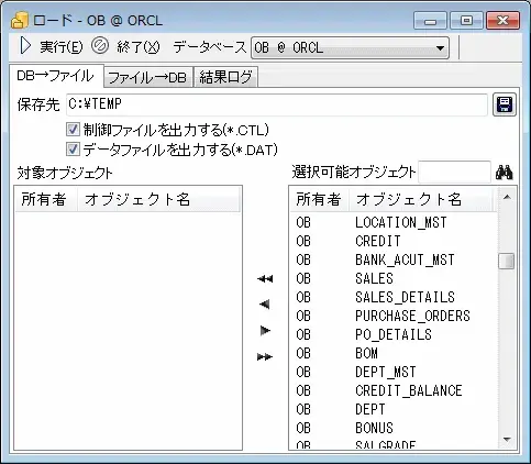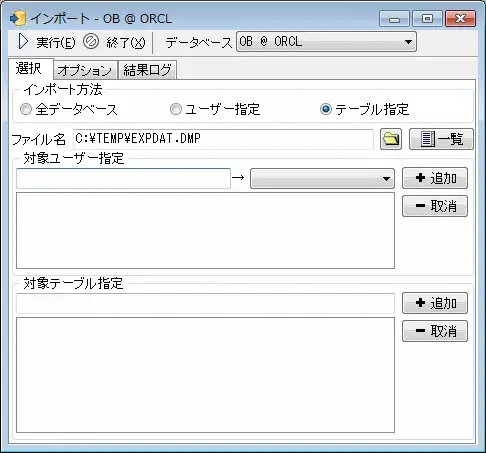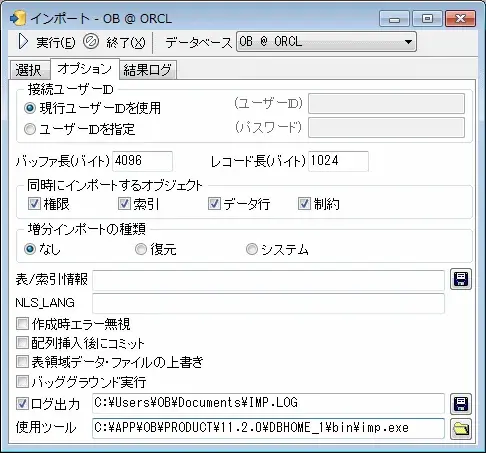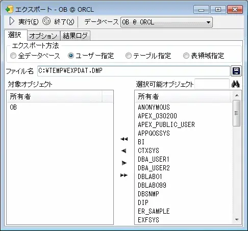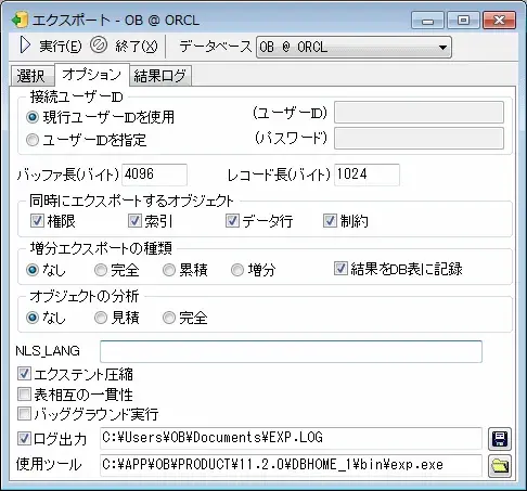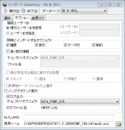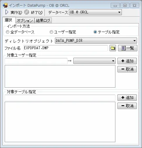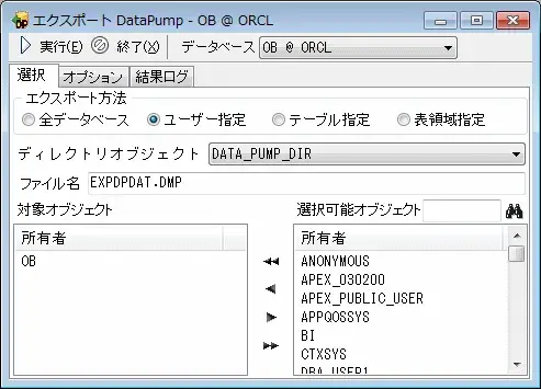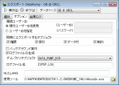 また、ログ出力を行うにはオプションタブのディレクトリオブジェクトに[DATA_PUMP_DIR]を選択して下さい。