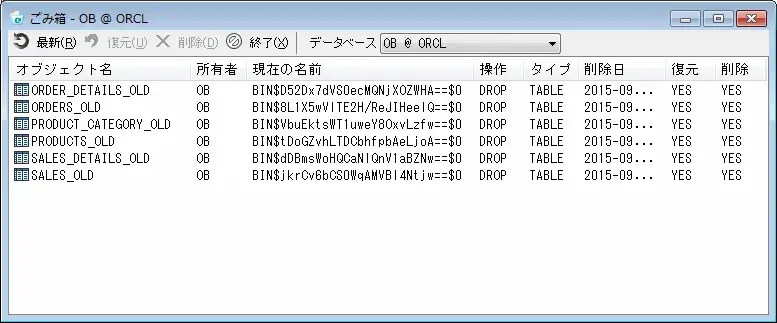 ORACLE データベース内にある、ごみ箱の管理を行います。