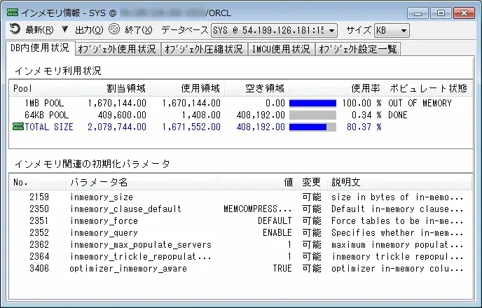 ORACLE データベース内にある、インメモリ(IM列ストア)の情報を表示します。