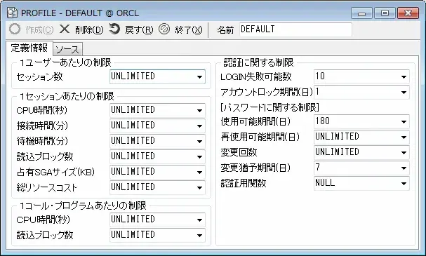 ※ただし、[ソース]タブではIDENTIFEIED BY句にあるパスワードは表示されていませんので、コンパイルする場合は再度入力して下さい。