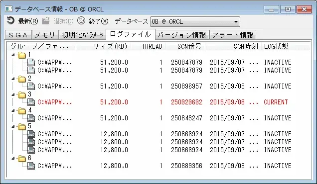 データベースで使用中の表領域・ロールバックセグメント・データファイル・ディレクトリ