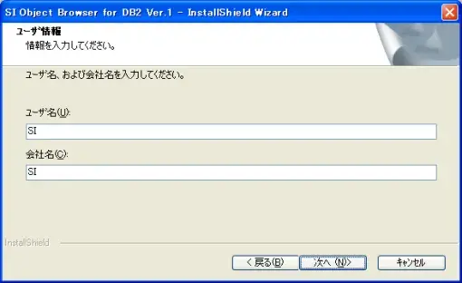 ユーザー登録の画面が表示されます。利用者の名前と会社名を入力し、[次へ]ボタンをクリックします。