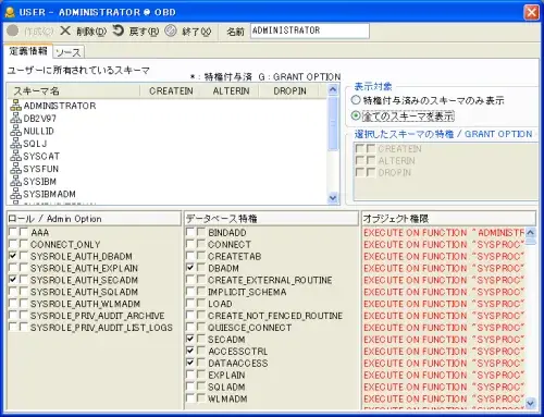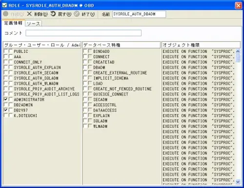 オブジェクト特権の付与については特権付与画面を使用して下さい。