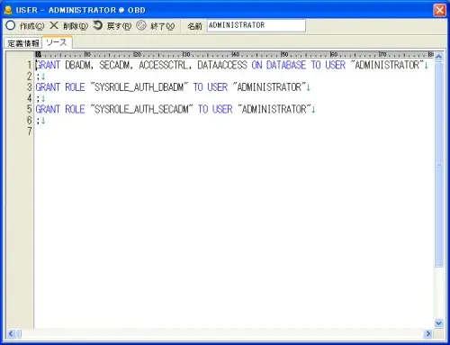 任意のユーザー・グループ・スキーマ・ロールを選択して画面上段のツールボタン