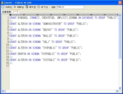 そのグループに対して付与されているオブジェクト特権が一覧表示されます。