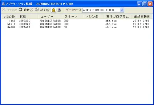 現在データベースへ接続中のアプリケーションを一覧表示します。