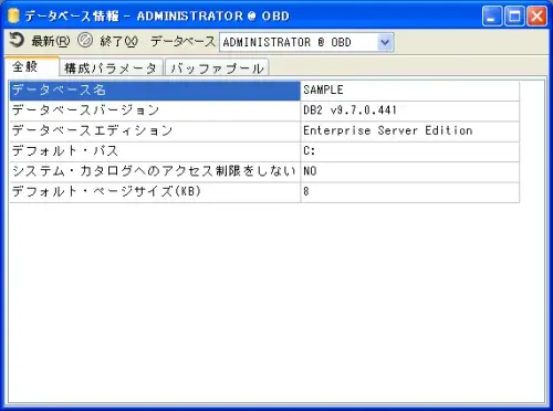 データベース名やバージョン情報を表示します。