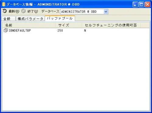 [バッファプール]タブ データベースに登録されているバッファプールを一覧表示します。