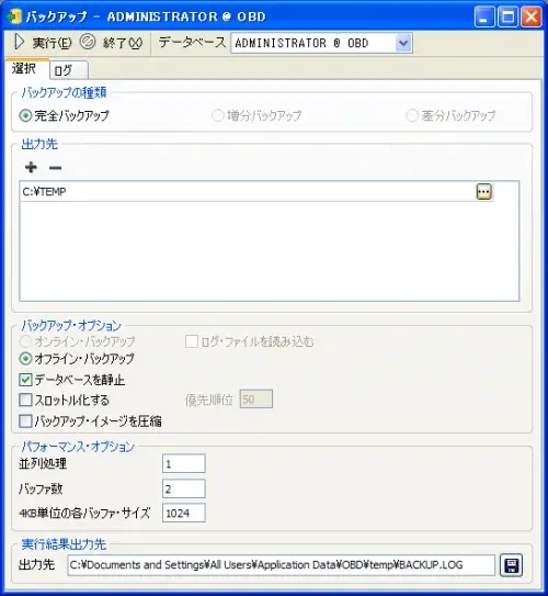実行]ボタンを押すとバックアップを開始します。
