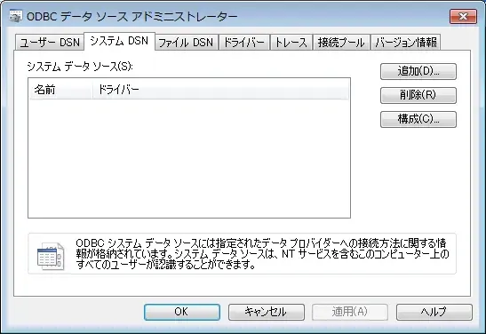 ③ [システムDSN]タブにある [追加]ボタンをクリックします。