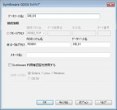 Object BrowserでSymfowareデータベースに接続するためには、データソース(ODBC)の設定が必要となります。