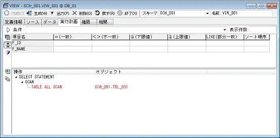 ビューを実行した際に発生した 実行計画を表示します。実行コストの確認も可能です。