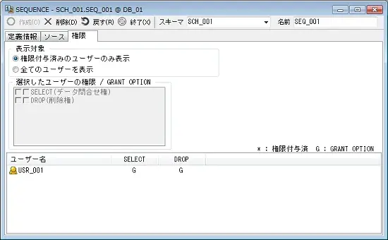 シーケンス(順序)オブジェクトの定義情報・ソースの表示及び保守を行う画面です。