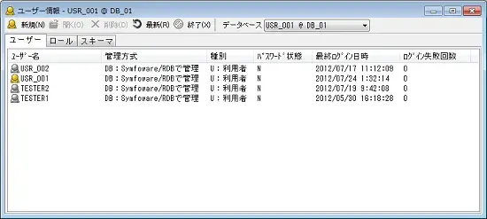 データベースに登録中のユーザー/ロール/スキーマを一覧表示します。