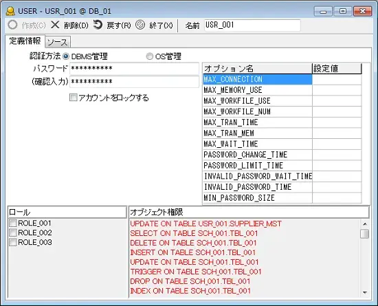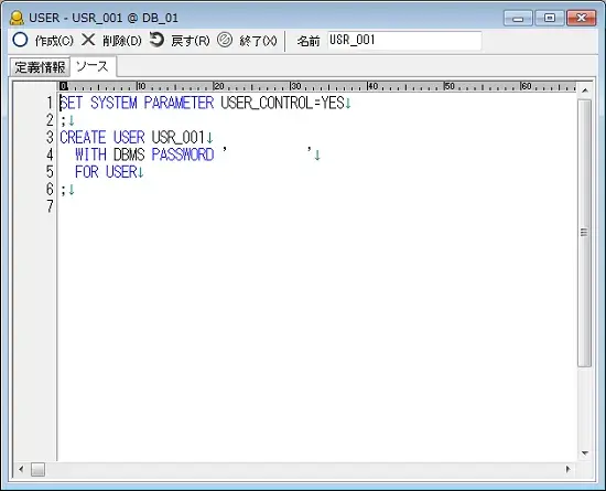 ※ただし、[ソース]タブではPASSWORD句にあるパスワードは表示されていませんので、