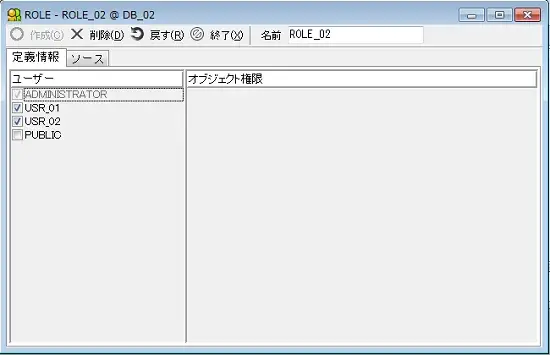 画面下部右側はユーザーに付与されたオブジェクト権限を一覧で示しています。