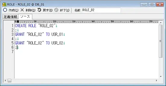 現在選択中のユーザー/ロール/スキーマの定義画面を表示します。