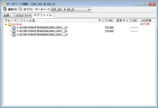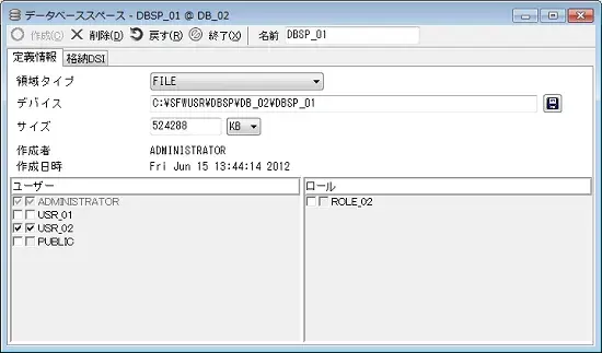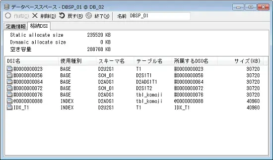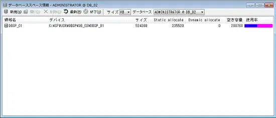 画面上段にはそのデータベーススペースを構成するデータファイルの名前及びサイズが修正できます。