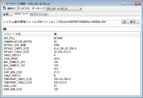 管理機能の事前設定についてユーザー/ロール/スキーマ情報画面を除く各管理機能 データベーススペース情報・セッション情報・ロック情報・ データベース情報・バックアップ・復元・ロードのご利用にあたっては、以下の制限がございます。 ①コマンドで実行するためリモート接続時は利用できません。 ②OSの環境変数に[RDBNAME]を追加し、 使用するRDBシステム名を変数にセットする必要があります。 ③コマンド実行時のユーザーはOSのユーザー名で実行するため、 データベーススペース作成・ロードの実行は Symfowareサーバーのログイン名とOSのログイン名を等しくする必要があります。 ④Windows Vista以降のOSをお使いの場合、コマンドの実行を正常に機能させるため、 UAC(ユーザーアカウント制御)をOFFにする必要があります。 |
