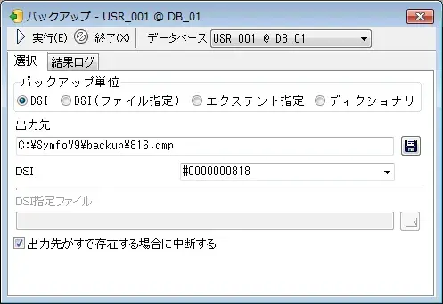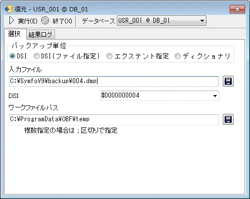 (バックアップの単位が「DSI」「ディクショナリ」の時のみ入力可)