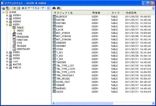 データベースに接続すると、そのユーザーが利用可能なデータベースオブジェクトが