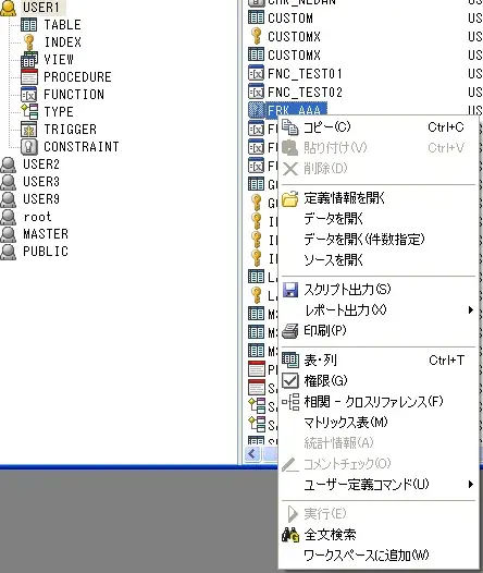 データベースオブジェクトに対する操作は、基本的に[オブジェクトリスト]から
