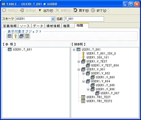 そのデータベースに格納されている全てのオブジェクトを一覧表示します。