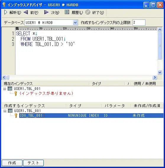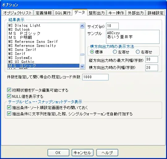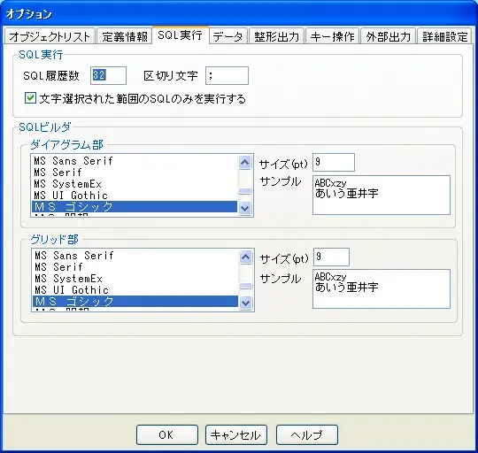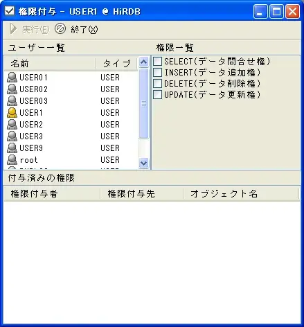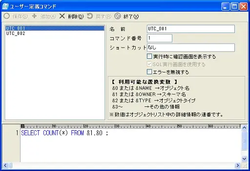 SQL文を実行するためのウィンドウを表示します。 (→ 3−5参照) |
