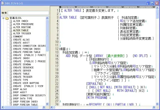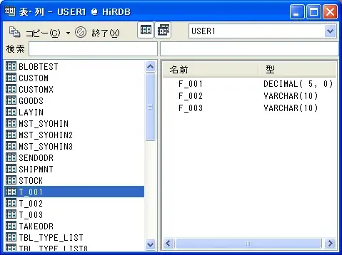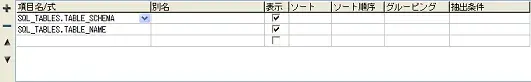 テーブルと、その列を一覧表示します。 (→ 3−6参照) |
