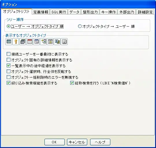 [ユーザー → オブジェクト順]ツリー表示をデータベース、ユーザー、オブジェクトタイプの順に表示します。