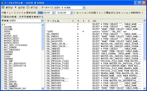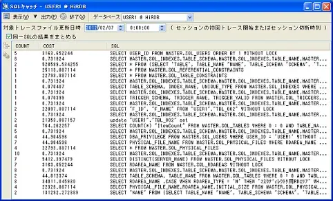 トレース情報からSQL文を抽出しテーブル単位にまとめて表示します。 (→ 3−15参照) |