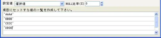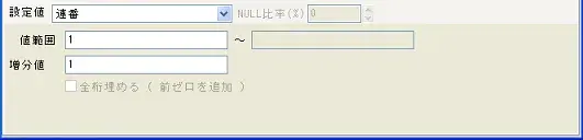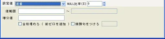 連番、乱数値、選択値、固定値、テンプレート、リンクテーブル値、 親テーブル値を指定することができます。 |