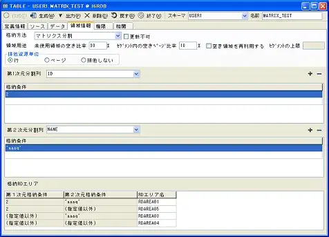 最も一般的な格納方法です。単一のRDエリアに対して領域を確保します。 画面の各値と実際に発行されるコマンドとの対応は次の通りです。
