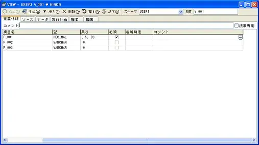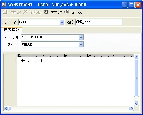 テーブル情報とは違い、この画面ではコメント以外の定義を修正する事はできません。