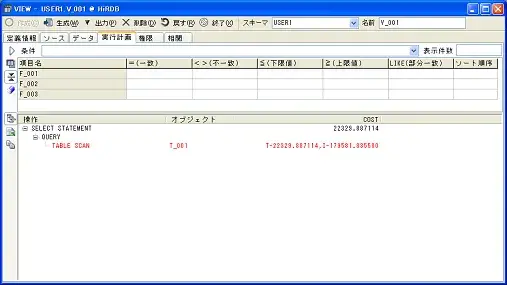 ビューを実行した際に発生した 実行計画を表示します。実行コストの確認も可能です。