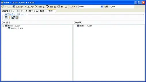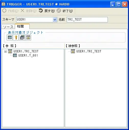 テーブルオブジェクトと他オブジェクトとの関連性が表示されます。