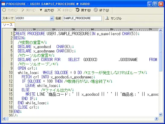 HiRDB標準付属の[SQL Executer]でコンパイルしたストアドプログラムをソース表示した場合、