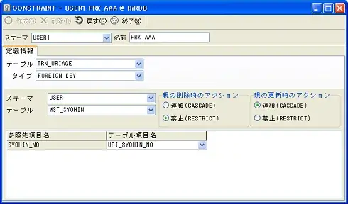画面中段では参照整合性の対象となるテーブル名及びスキーマ、
