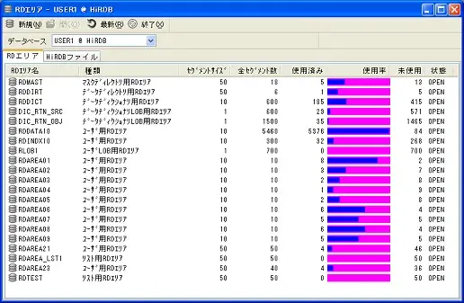 ファイルを選んでダブルクリックしていただくと下画面のように、RDエリア情報画面が表示されます。