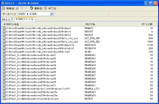 データベースで使用中のHiRDBファイルを一覧表示します。