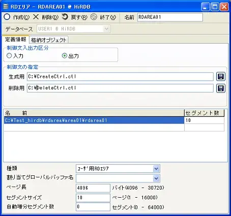 RDエリア作成・削除は以下の手順で作成(削除)が可能です。
