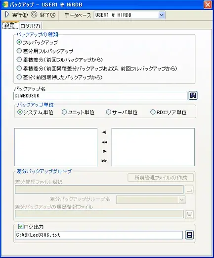 [設定]タブのログ出力設定を行いバックアップを実行した時、ログを表示します。